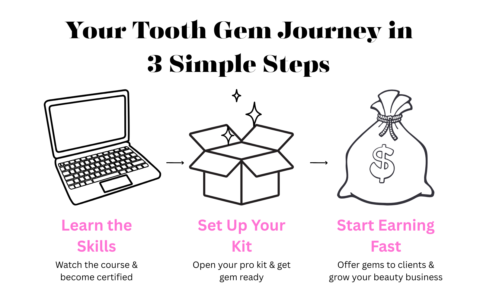 Everything you need to start your own tooth gem business—from professional-grade tools to premium Swarovski gems. Choose your kit and start earning 💖